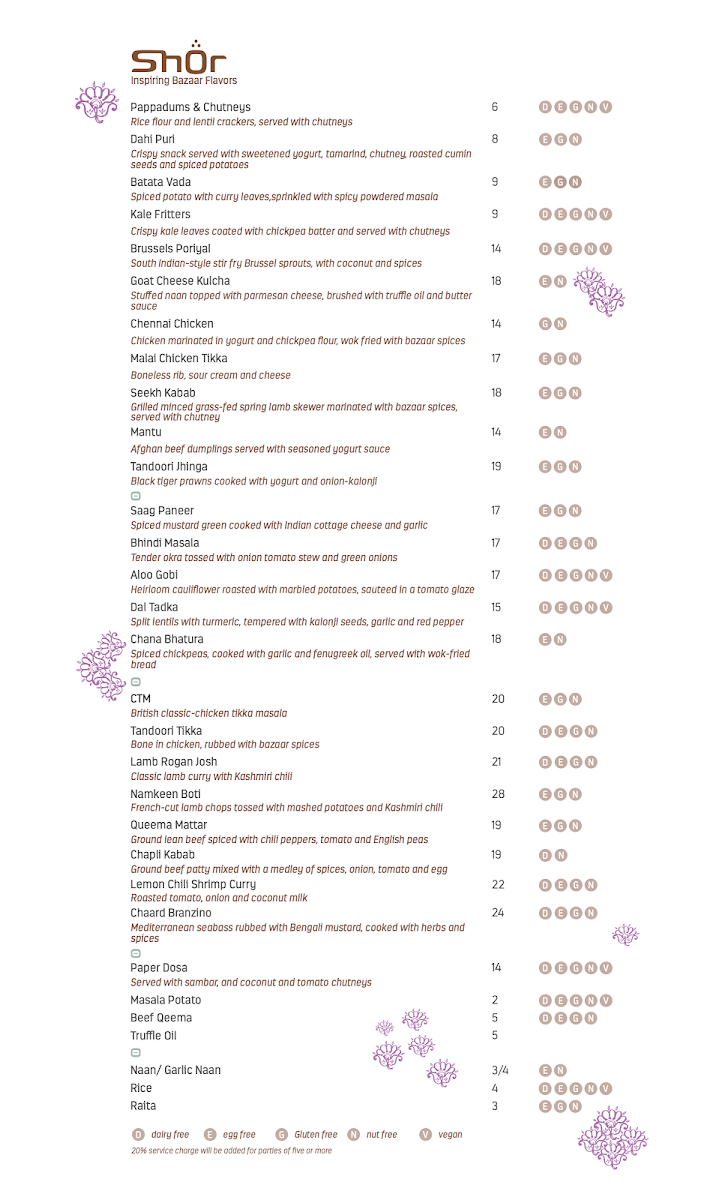 Crispy snack served with sweetened yogurt, tamarind, chutney, roasted cumin seeds and spiced potatoes